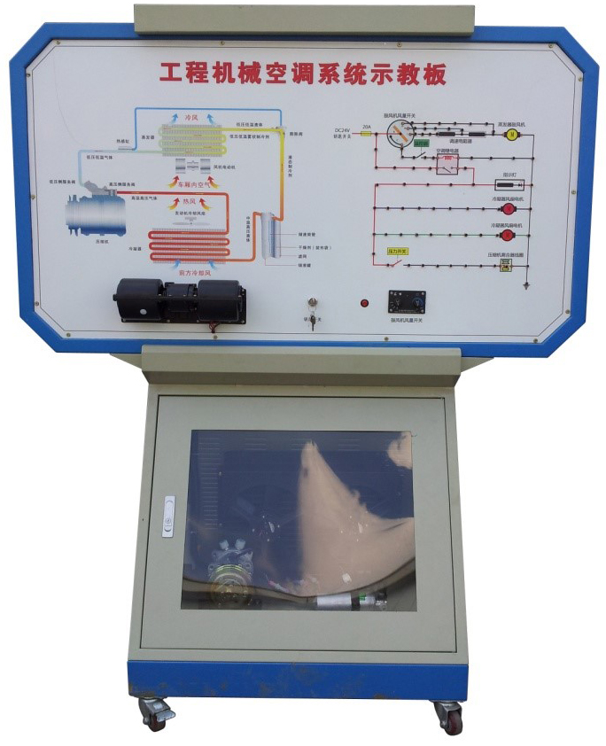 2.由三相電機(jī)做為動(dòng)力源,帶動(dòng)空調(diào)壓縮機(jī)工作。操作空調(diào)控制面板,可真實(shí)演示車(chē)輛空調(diào)系統(tǒng)的工作過(guò)程以及工作原理。